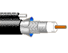 18 AWG Solid .040 bare copper-covered steel conductor. Gas-injected foam Polyethylene insulation. Duobond Plus and an 77% Aluminum braid shield. PVC jacket with messenger.
