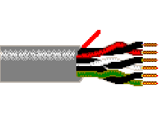 22 AWG bare copper conductors. PVC insulation. conductors twisted into pairs. multiple pairs cabled together. PVC jacket with ripcord. Sequential footage marking every two feet.