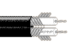 Dual channel. 30 AWG stranded (7x38) TCCS conductors. FPE insulation. individual tinned copper spiral wrapped shield (85% coverage). PVC jacket. polarity ribbed.