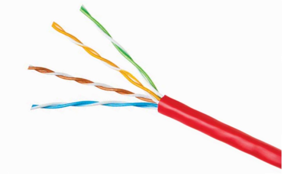 26 AWG stranded (7x34) tinned copper. 4 pairs. Polyolefin insulated. Overall foil shield with 26 awg stranded (7x34) tinned copper drain wire. PVC jacket.1 ft, RED- IWC Item No.: CVF-260704-L5E-2(Q)
